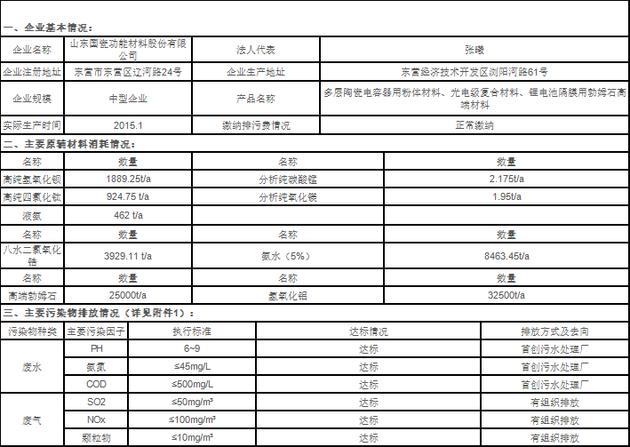 JN江南·(中国)体育官方网站材料自成立以来,严格遵守国家的各项法律法规及标准规范,建设项目均依法履行“环境影响评价”与“三同时制度”等相关规定,生产项目均严格执行“排污许可管理制度”,使用设备和工艺均符合国家产业政策的要求;公司成立之初即制定了环保管理规章制度,并在发展中不断更新完善;公司主动编制了环境报告书,并确定了“清洁生产,防控伤害,健康发展,服务社会”的发展理念。山东JN江南·(中国)体育官方网站重视环境管理,积极建立了环境管理体系,成立专职部门,聘用专职人员进行环境管理,力求从制度、规范和管理上提高整体环保意识,约束环境违法行为,保障公司的绿色发展。公司经过专业检验及认证机构的审核,顺利通过了ISO14001:2015环境管理体系的认证。