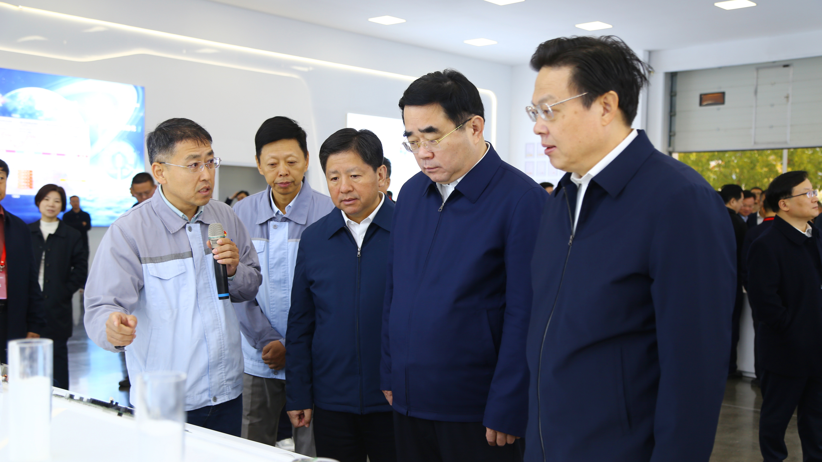 2024年适值“黄河流域生态保护和高质量发展”重大国家战略提出五周年。为做好“共同抓好大保护、协同推进大治理”,10月21日-23日,首届“黄河流域省(区)属国资国企对接交流会”在东营市召开。10月22日,山东省国资委党委书记、主任满慎刚带领与会领导莅临JN江南·(中国)体育官方网站材料调研,东营市市委书记杨国强,市委常委、秘书长成秋林,公司副董事长张兵,董事长助理、催化材料事业部总经理吕玉兴等陪同参观调研。