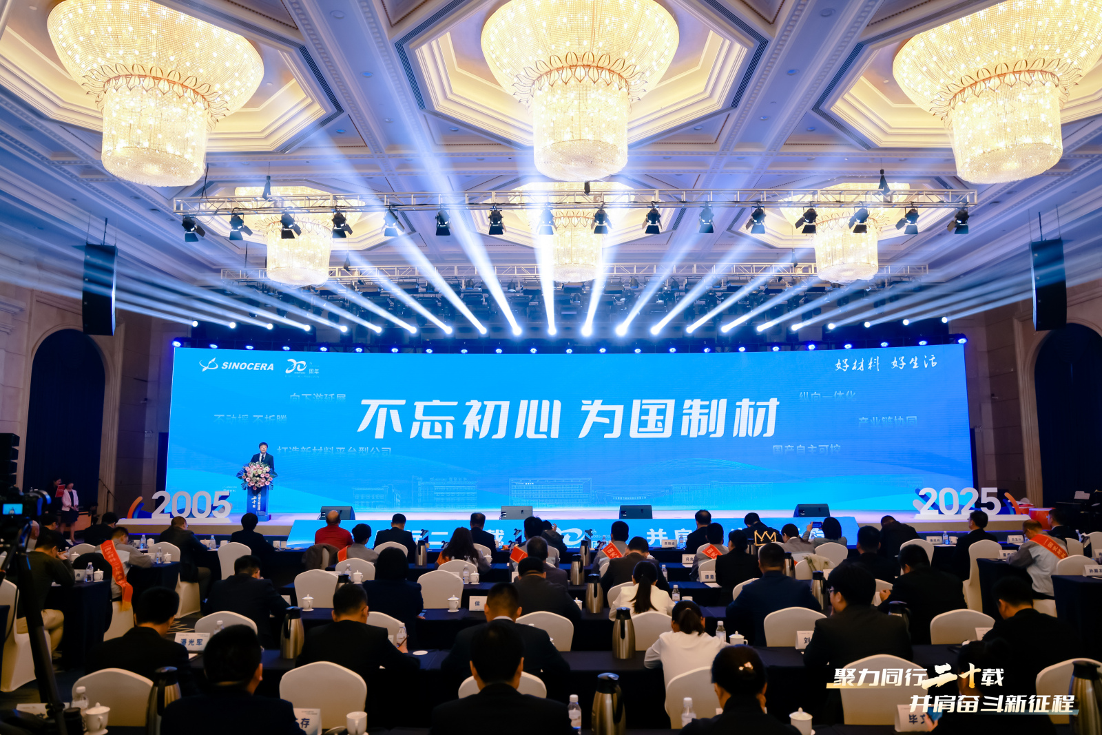 庆典大会以“聚力同行二十载 并肩奋斗新征程”为主题,通过短片回顾、颁奖表彰、领导嘉宾致辞、高峰论坛、文艺表演等环节,展现了JN江南·(中国)体育官方网站材料立足新起点,迈向新征程的坚定信心和决心。