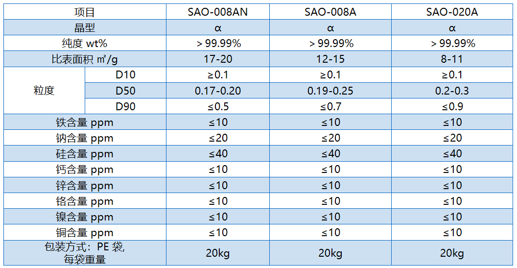 本公司生产的高纯度氧化铝是基于我司独有的水热合成等技术,将氧化铝本身特性充分发挥,得到优质、高纯度α-氧化铝。具备优良的绝缘性、化学稳定性、粒度分布窄,单分散性好且磁性物质含量极低等优点,可作为锂电隔膜涂布、锂电池正极材料添加等专用原料。